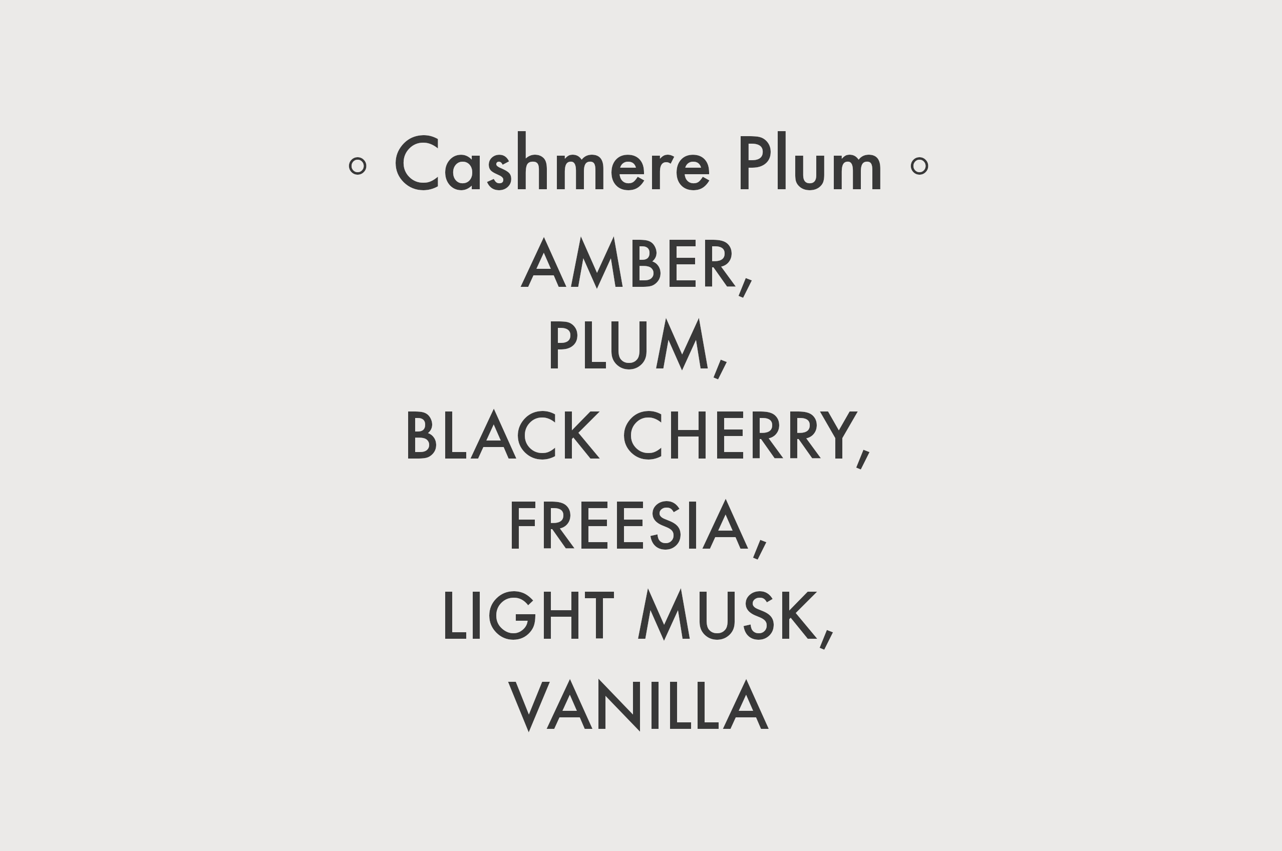 Wrap yourself in comfort with our Cashmere Plum soy candle. This fruit forward scent has a cozy warmth that feels inviting. A touch of black cherry enhances the dark plum base of this fragrance. Amber, sugar, and vanilla base notes add a slight sweetness to this scent, while musk and freesia add a light earthy dimension.